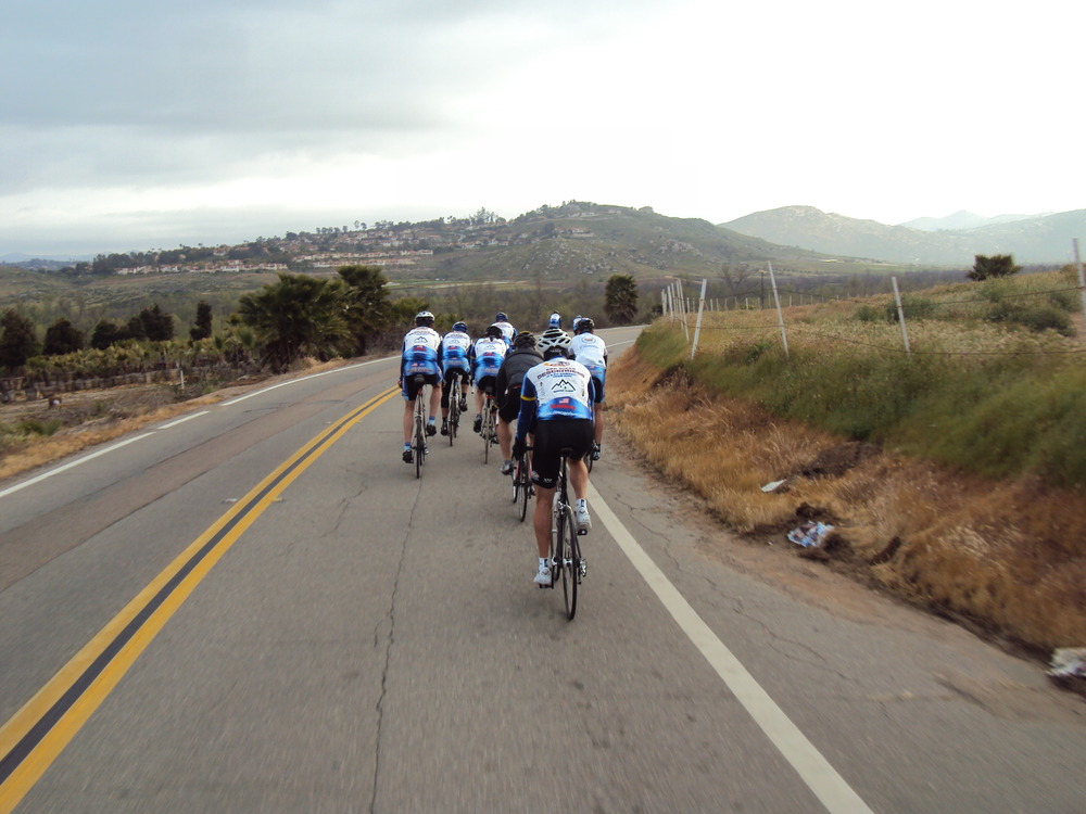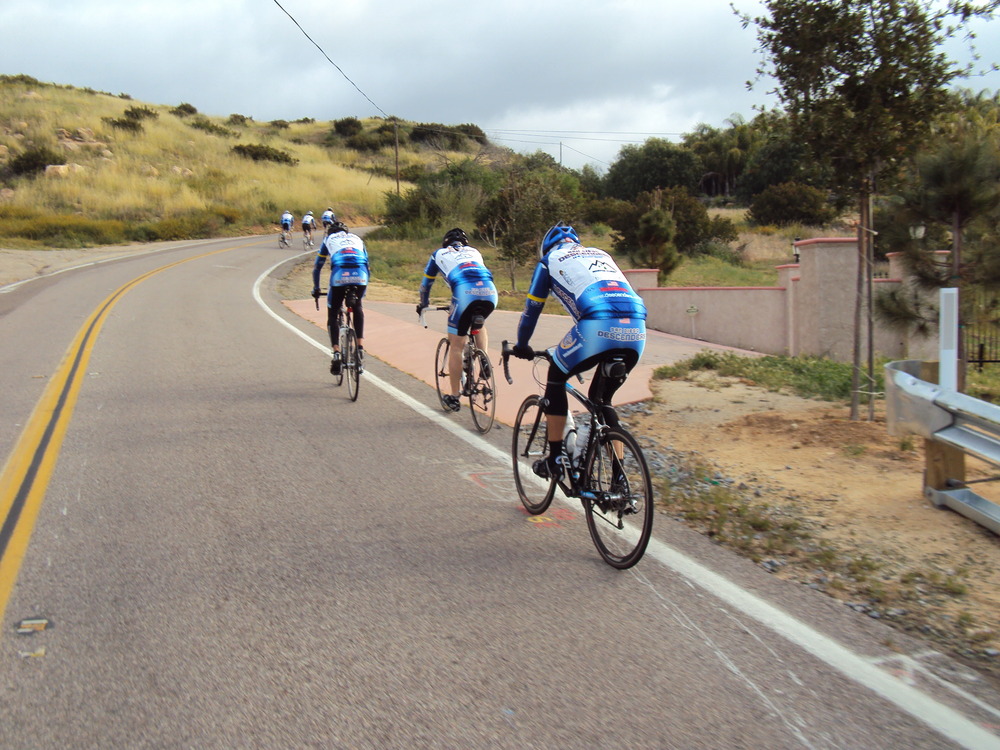 We had a good ride today up the Ramona Grade. A large group of ten riders met up at Pomerado and RB Roads and headed up HVR, down Bandy and up the Ramona Grade. Bob R invited a new friend, Enrique, to join us for the ride. He road strong as the main pack headed towards Old Julian Road. A smaller group, me, Bryan, Bob P and Geoff, headed back from Ramona via Dye Road and down HVR, then over through 4S Ranch. I rode to Torrey Pines HS to see Dyess run in her track meet. 62 good miles and bonus daddy points to boot. Attached are a few photos.
