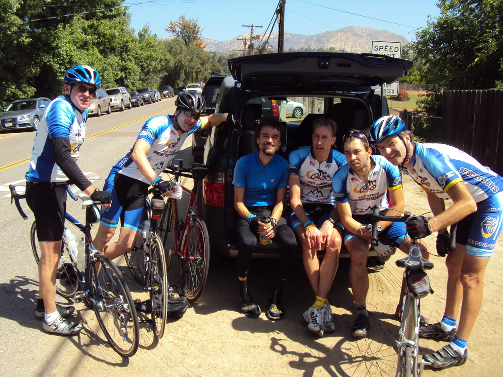 Oleg hit the high notes–it was a great ride. The start area was not as good as prior years, but we made the most of it. Jim Knight put a small wrench in our plans and rode off with us a few minutes after 7 am instead of his 7:30 start with Drew and Rick. We pushed hard from the start and stayed with Jim through the descent to Dehesa Road. This caused John to fall off the back and he rode the race solo–he deserves the tough man award for the day; long time to be out there trying to catch folks.
