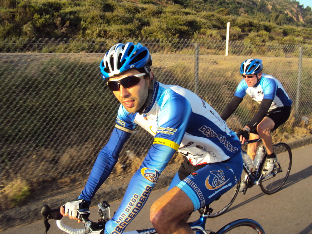 After cruising through Pine Valley, I took the point and rode hard to catch a few guys on the Descando loop. I did not notice that Geoff and Cresap went straight by the turn and continued on towards the highway. My efforts paid off as I was able to ride the wheel of some fast guys and descend quickly back down Dehesa. I saw Mike Hodges coming back up and he pulled a u-turn to join me. I was quite startled to learn that Geoff and Jeff were in front of me by quite a distance. Hodges did many monster pulls as a small group of four of us rode for miles back towards Alpine. We finally were able to close the gap and catch the two wayward Descenders. All four of us finished about the same time; and for the record, well behind Guido.