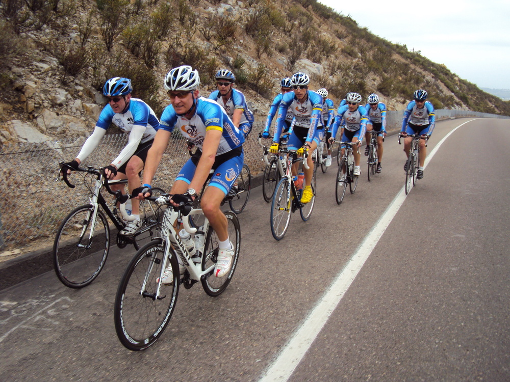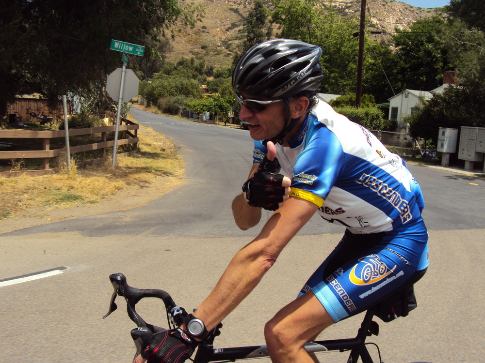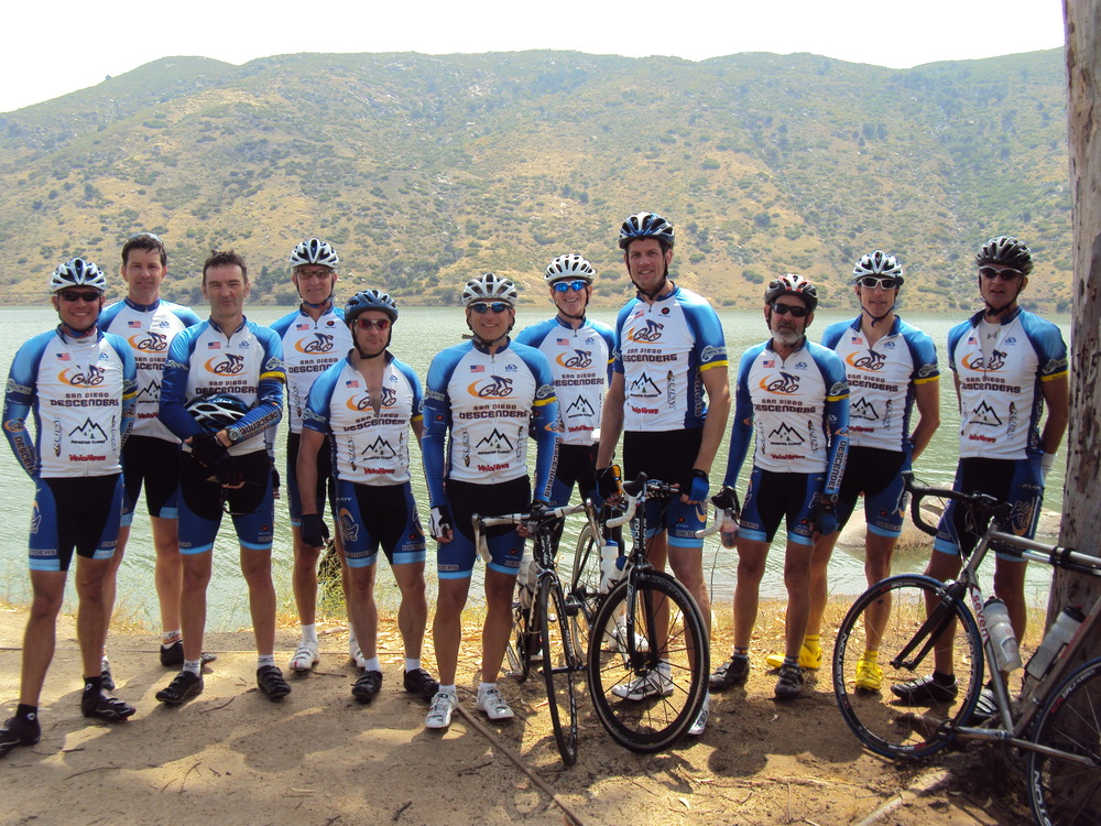 For those that could not ride, Voris mapped out a new Descenders route through Lakeside and Alpine with a loop on El Monte to El Capitan Reservoir. We did our usual start at Garden and Poway, then climbed SPP. Cresap was out early and out ahead of us on SPP. We caught Jeff and the group rode together at a very appreciated and relaxed pace to the top. The descent down 67 was a screamer; loads of fun. We headed southeast towards Lakeside and behind El Cap high school, continuing south and eventually going under I-8 to Old Highway 80. We rode past the start of the Alpine Challenge this year and had another wicked descent down Harbison Canyon. The Dehesa climb was difficult as always and the group spread out. We regrouped and returned the same route back towards Lakeside, turning on El Monte towards the reservoir. This was a fun road that led well into the park area by the reservoir. After a few group photos and more stories/personal information provided by Mike Hodges to keep the levity up, we returned toward highway 67 again. The climb back to SPP was brutal (see above comments).