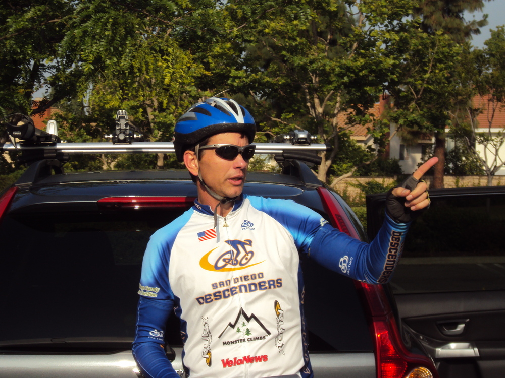 We watched many of the other racers finish at the top before we decided to try to descend back down the mountain. It was more hectic than Palomar since most of the road at the top was blocked for the last of the racers to finish the stage. The crowds of riders, walkers and even some of the racers going back down Mt Baldy all hit the road. Bernie has two flats near the top so we left him in the able care of Ernst while Guido, Oleg and I tried to catch the rest of the group who were well ahead of us by that time. Oleg and I were able to descend most of Baldy with a few pro riders, motorcycles and support vehicles. After the village we continued down the mountain and regrouped near the bottom. We were flying, hitting almost 50 mph down Baldy on the open roads. The group rode back to our cars, having ridden more than 60 miles and over 7,600 feet of elevation. Awesome day to be a Descender.