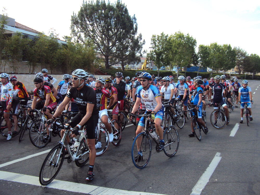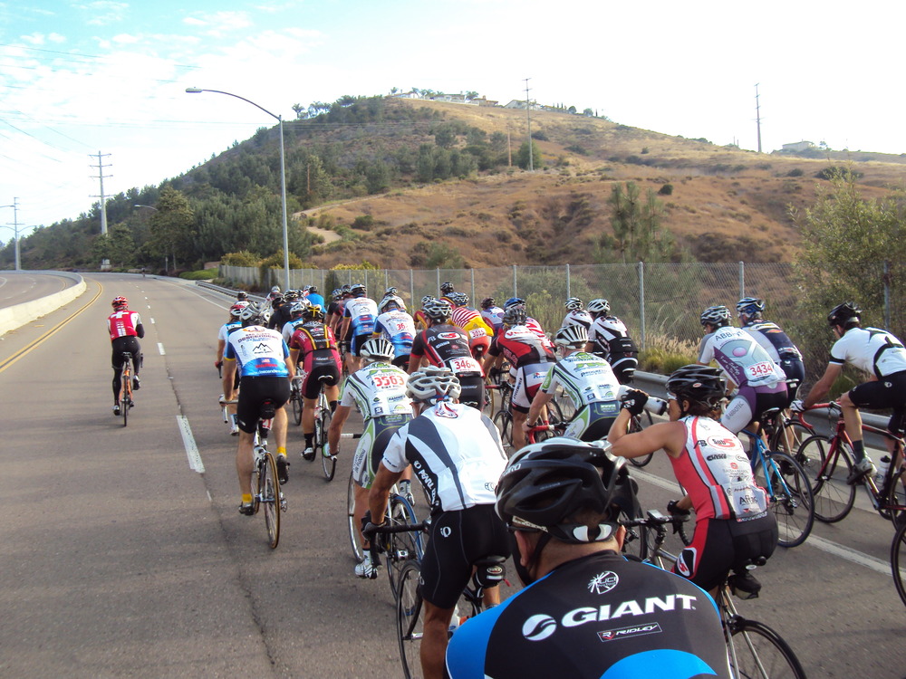 We had a smaller but strong showing at the ride today. At the start were Bernie, Cresap, Voris, Len, John, Scott, Jonatan and Rob. As usual, the early frantic pace flew along Mira Mesa Blvd, towards Sorrento Valley Road. The large peloton surged down the hill at 50 mph. My max speed for the day was 50.6 mph going down this hill. A number of the guys stayed at or near the front to avoid any unnecessary risks. The entire group made it to El Camino Real with no damage and headed toward the polo fields. We looped back towards Rancho Sante Fe and onto Del Dios Highway. This is where I was blown off the back of the lead group and tried to maintain a good pace around Lake Hodges. I rode by Scott D as he was changing a tire. Jonatan also had a mechanical issue so he dropped behind. I saw Len a number times during our trek down Pomerado towards the finish. Jeff, Dave V and Bernie were all out near the lead group. John Bittinger blew by me on the final climb of Pomerado. Len and I finished about the same time in 2:26 of riding, about 20.2 average pace. The route was just short of 50 miles with about 2,900 feet of climbing. The lead guys were there to welcome us to the finish before I headed to the beer tent. John Moran finished a few minutes later with Scott and Jonatan coming later.