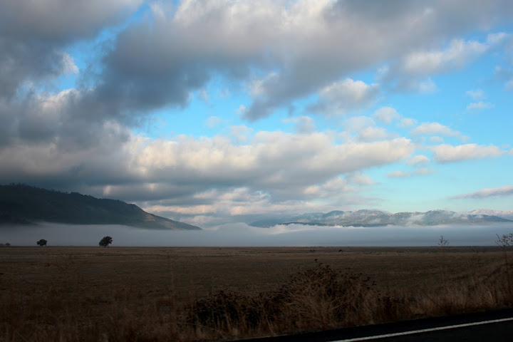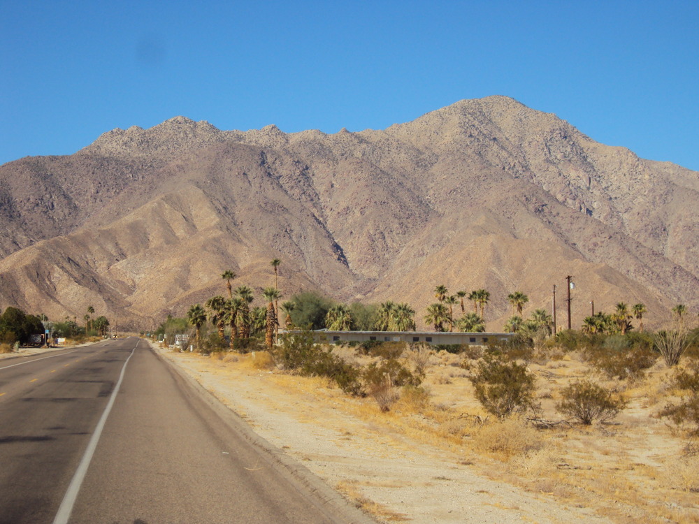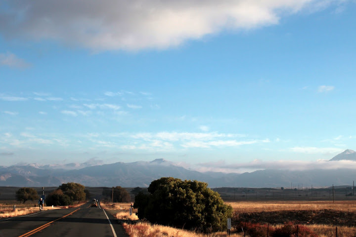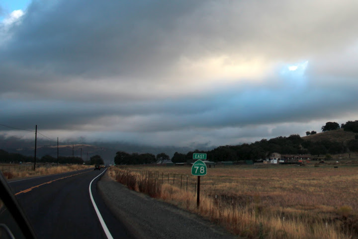 Oleg rode up in Guido’s car with Hodges and me. He must have taken over a 100 pictures out the window of the car driving up as we viewed the cloud layers and fog levels with the sun shining through. Oleg captured the scenes wonderfully. It was quite brisk when we arrived to find Farkas there attending to one of the Borrego Springs Double Century riders who was hypothermic and not feeling well. He tended to her while we put on all the layers we could find to begin the climb up S2. It was a gradual 6 mile climb before we had the long descent down San Felipe Road to Route 78. This intersection was just east of Scissors Crossing where we took the left towards Borrego. At the turn to Yaqui Pass we stopped to take off some layers before the brief climb up Yaqui. The narrow canyons and curvy roads provided a great smooth ride down into Borrego Springs. We stopped at a small park for a bathroom break and some water in the center of town before heading north on Palm Canyon Road. John headed out first to try to get a lead on the guys. I also went out a bit early in a failed attempt to get some distance between me and the much faster riders I knew were coming when we got to Montezuma. The 11 mile climb and almost 6% average grade lay ahead.