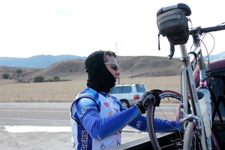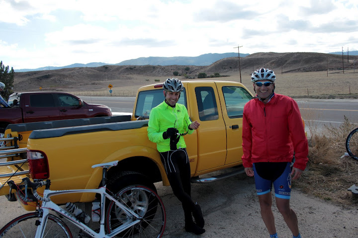 On the drive over we saw many riders doing Borrego double-century ride (insane! – 13,300 ft elevation over 200 miles – I heard Drew Peterson won it!) and when we arrived at the meeting spot Mike Farkas was already there, helping a rider who was struggling with hypothermia. Nice job, Mike!