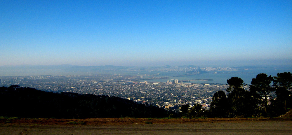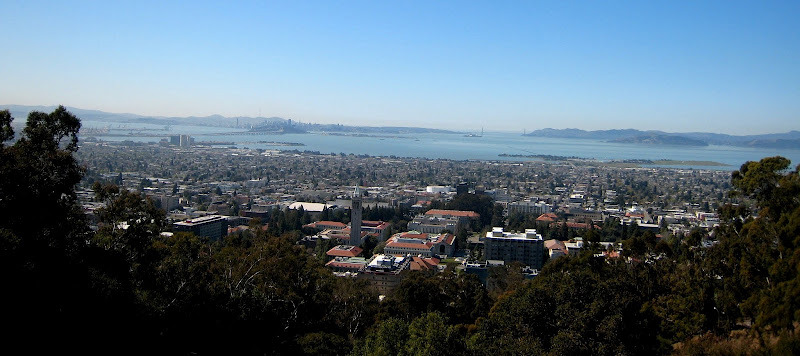 Fantastic panoramic views of Bay Bridge and Golden Gate bridge, as well as San Francisco downtown. No fog. Highly recommended if you are visiting East Bay/Berkeley area.