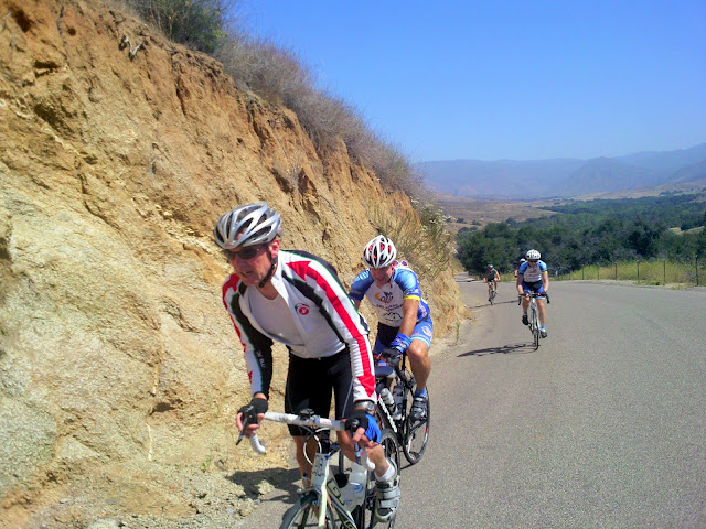 We used rotating paceline and some fast descending to get back – Jeff S. got away on the Scripps Poway and it took a huge effort on my part to bridge up to him. Now we had a sizeable gap and we rotated well, trying to keep it going – however, Guido, Hodges and Rob would have none of it and easily closed the gap. A little too easily for my taste. I demand doping control!