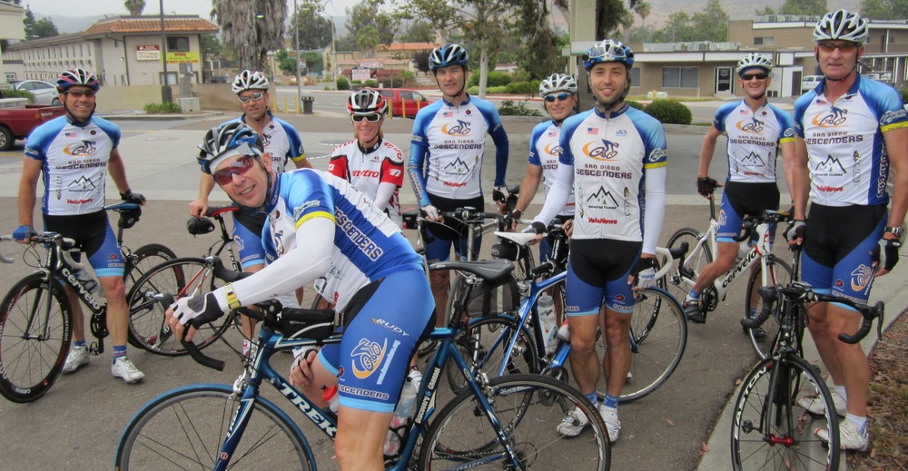 Oleg captured the summary of the ride well. I do want to add a few comments from my perspective. The pace did not seem that pedestrian to me. Even the climb up 67 towards Poway Grade and then Mt Woodson started to spread the group out. I waited at the top of Mt Woodson and said good-bye to Ernst who had to head home while the last of the riders came together. Dave E and Dan S looped back home so we were down to 10 riders. I was now behind the front group flying towards Mussey. I passed Garrett and Jeff S before the Archie Moore curve but could not close the gap. Jeff S put it in overdrive and he blew by me. I grabbed his wheel and he quickly closed to the lead group. The pace down Mussey was not its usual blistering pace line, a nice respite. Garrett had to head back down HVR so he missed the ride to Pamo. We continued our pace line on Dye Road to Pamo. That descent is always beautiful, all riders noting that a smooth 5 mile road extension is on our wish list. The MTB riders came at us on the packed dirt road. They stopped to share ride routes. Hodges is pushing for a dirt trail road ride. The ride back towards Mt Woodson was uneventful until we had a near miss run-in with a large SUV. The big, black car came at us during the cut through road we take at Mt Woodson, driven by a distracted driver "checking her mailbox". We all pulled into the dirt on the side of the road, evening looking for potential bail out spots in the trees if she did not slow down. Fortunately she quickly decelerated right in front of our group. Hodges briefly attempted a polite dialogue that did not get through to this driver who seemed to deem our intrusion on the right side of the road as our problem. All riders safely made it back to highway 67 and picked up speed toward the Poway Grade. Bernie turned west while the rest of us went back via SPP. The descent was quick and we all pulled hard back to the start at casa Voris. Guido and I still had to pedal up the hill back to PQ. We finished the great ride with about 73 miles and 4,600 feet of climbing. Great training for Monster Climb. Attached are a few photos. Ride on- RobDescenders, we had another fantastic day on the bike!