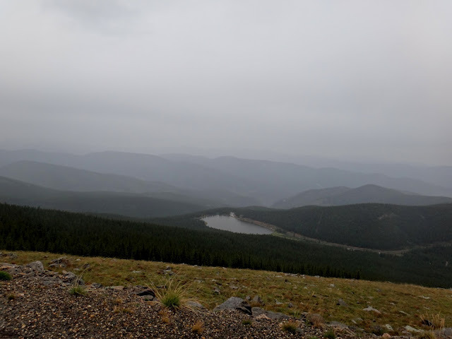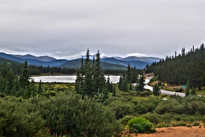 But I wasn’t so lucky – just a few miles into my ride it started drizzling, then turning into serious downpouring. The temperature was in high 70ies when I left Idaho Springs but now was low 50ies and dropping. Should I turn around and go back to the car and postpone my date with Mt. Evans till next year? My shoes, my clothes were already completely wet, but I wanted to get to the top so I just pressed on, despite the rain – after all, how much worse could it be?