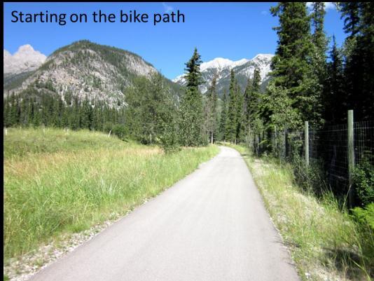 On the way back I took a slightly different route. When mapping out the ride, I had noticed a path to the south of the highway that did not appear to run all the way to the Bow Valley Parkway. Since I had nothing to lose, I looked for a possible connection between this path and my route. Just as I was getting onto the highway on ramp, a path entrance appeared to the right. The entrance was gated – likely to keep bears off the path (or maybe on the path – not sure which). As it turned out, this has to be one of the most scenic bike paths in the world. Describing the views really does not do them justice, so I have included a few representative pictures.I headed back into Soul Ski and Bikes at about 2:45PM. After telling them about my experiences with the rear derailleur and the left shift/brake lever, the manager gave me a 20% discount and pointed me toward the bathroom next to the repair area with a ready supply of hand degreaser. The discount was more than I had expected – it was a rental bike after all. Next time I get a rental, however, I will do a more thorough checkout before heading off on the ride. Overall a fabulous ride with a few, manageable mishaps.