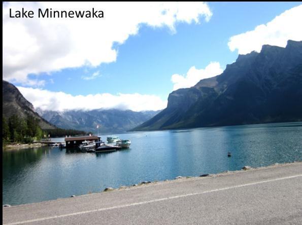 The ride started from the center of Banff to the East along Buffalo and Tunnel Mountain Roads. After the first small climb, the road rises well above the Bow River Falls (rapids actually). The climb continues after this and gets a bit steeper heading up Tunnel Mountain Road. At this point, I noticed that the cage on the front derailleur was rubbing when I was using low gears. This was a little irritating, but I figured I would deal with it once I looped back through town before the big climb of the day (Mt Norquay). Tunnel Mountain Road rolled up and down through the woods and brought me back to Banff Ave. I then headed north to Lake Minnewaka. The climb up to the lake is reasonably uniform with a few steep pitches. The lake is flanked by massive granite peaks fading off into the distance. Following the lake was a gentle downhill section with ideal road conditions and well banked turns.