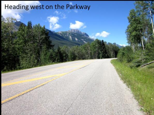 For the final leg of the journey I headed along Highway 1 to the Bow Valley Parkway. It was about 12:45 PM as I turned onto the highway. Based on the 1.5 hour drive to Calgary and my 7:00 PM flight departure, I figured I should turn around after about 1 hour in order to be heading out of Banff by about 3 PM or so. With no specific end goal in mind and just a turn-around time, this part of the ride was quite relaxing and a chance to just enjoy the view. The Parkway runs along the Bow river and provides some excellent views of the surrounding mountains and the river. Traffic is incredibly light, since anyone in a hurry is on Highway 1. Bicyclists are reasonably numerous including one guy on a TT bike and a club running a paceline (both going in the opposite direction). I rode until Johnston Creek and made a slow loop through a heavily wooded campground. The left brake lever assembly had been loose for most of the ride, so I took a few minutes to tighten it down. Without an actual ball-end hex, it was almost impossible to get this done properly. While taking a few pictures at the turn around, I began to notice a steady accumulation of mosquitos. By the time I had my camera stashed, helmet back on and was away, I had attracted quite a swarm. Fortunately mosquitoes are slow and I was rid of them in a few pedal strokes.