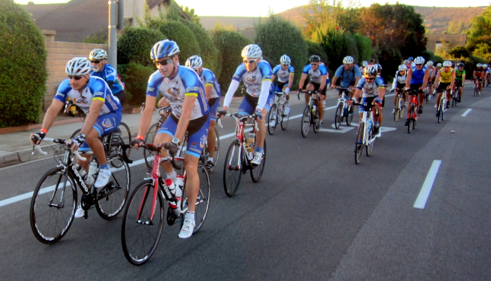 The climb up the 78 hill past the Safari Park separated our group a bit but we all regrouped again along Citrus. The pace was not too fast as we made our way through Escondido. At mile 38, just before the turn onto El Norte Parkway, Geoff B got a flat. We left him on the side of the road, one Descender gone. Our group stayed together to the aid station on Woodland Parkway. We all stopped for food and drink. Just as we were about to roll, the next group got to the station. This group of riders included Guido, Frankie, Boyle, Yi-Shiou and Bryan. The Descenders contingent was growing as we all formed into one large group after they caught us on Mission Road after Palomar College. We were now at about 50 miles and had averaged about 19.7 mph, a bit slower than years past but still a good pace. The group hit a turn onto El Camino Real that was new. I thought it was wrong and stopped to look for orange arrows. The signage was weak and we usually went straight along Palomar Airport Road. I was now behind and alone. I had to push to catch the group and was fortunately saved by the light at Cannon Road. This was about mile 55 and Claus was over fixing his own flat, another Descender left to his own demise. The group rode to PCH and the next aid station.