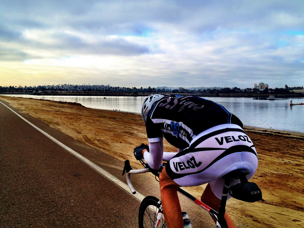 Bob Raibert and I met on Wednesday at the bottom of Torrey Pines for a quick morning ride – Bob rode from Carlsbad and I rode from home. We went over to Fiesta Island so that Bob could fine-tune his position for Time Trial at Fiesta on Friday (see attached). Bob is coming off some impressive mileage week, including a 100+ miler up to Palomar (South and East grades!) on Monday. After our Fiesta practice went back along the coast, Bob heading back to Carlsbad, and I accompanied him to Torrey Pines before heading back to my office. You should have come,