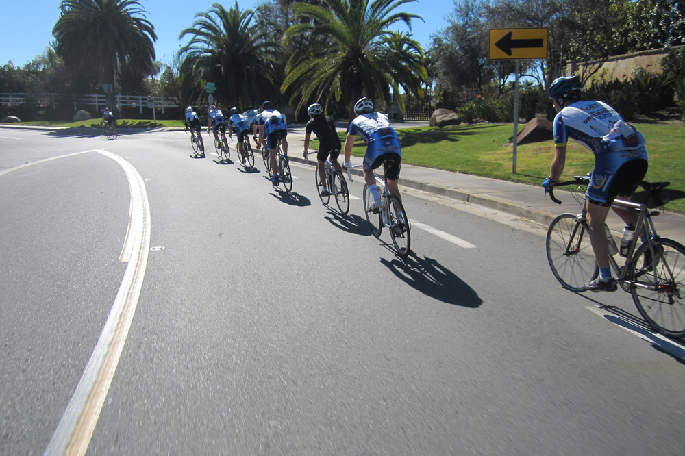 We had a good group of riders today ready for a nice pleasant spin up the coast to Oceanside. A total of 15 riders came in and out of the ride. Some of the usual suspects were there–Voris, Rick, Hodges, Guido, Geoff, Yi-Shiou and Rob. We welcomed back Dave Ernst, who if fully recovered from his minor surgery. Garet came for part of the ride as did one of our many world travelers, Bob Proulx. Bob landed from Europe just last night. Jeffrey was there as was Larry and Neil. We also got a cameo appearance by Jeff Cresap. Once we got to the coast we met up with Zach, a young strong rider who plans to join us as often as possible between college classes. It was bright sunshine but still cool temperatures when we took off from the corner of Black Mountain Road and the 56 bike path.