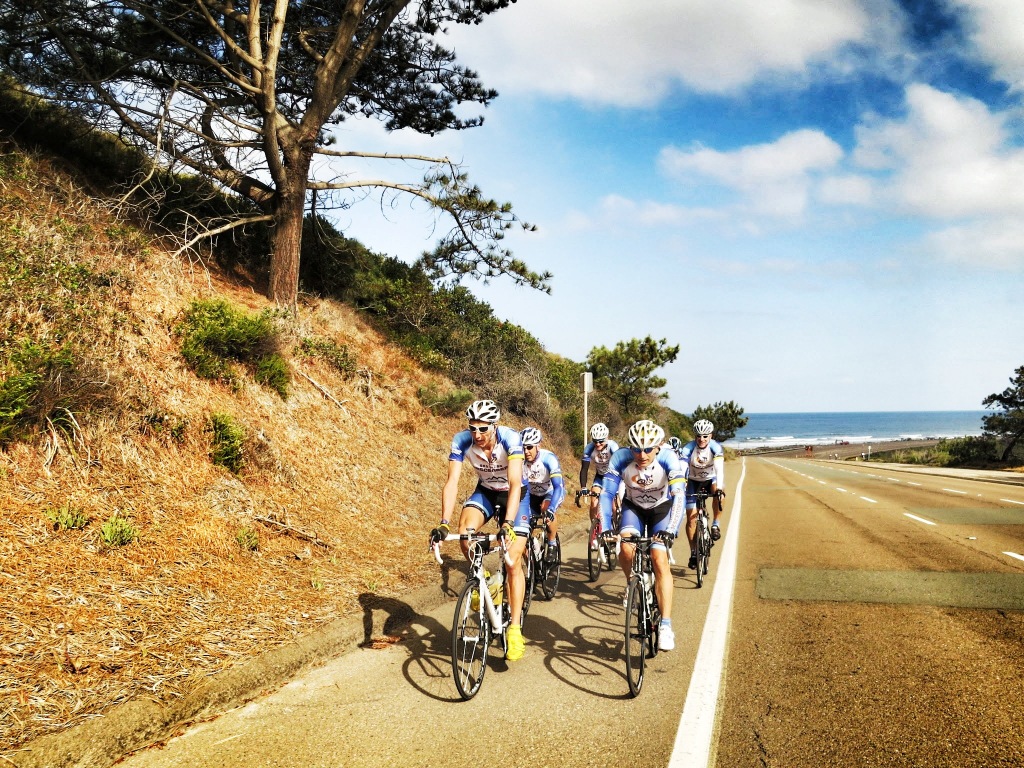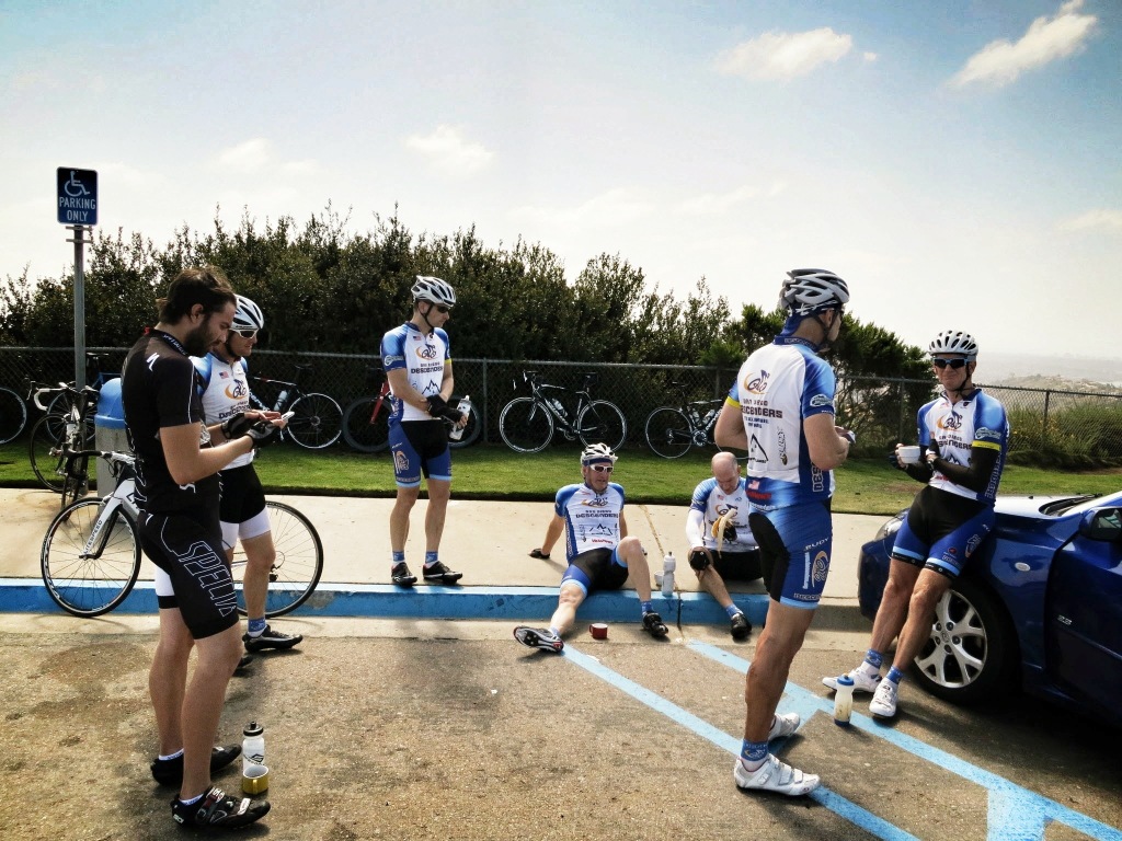 The ride went as usual, with controlled climb up Torrey Pines (lead by Chad) and animated descent (lead by Sheehan) to La Jolla Shores.
