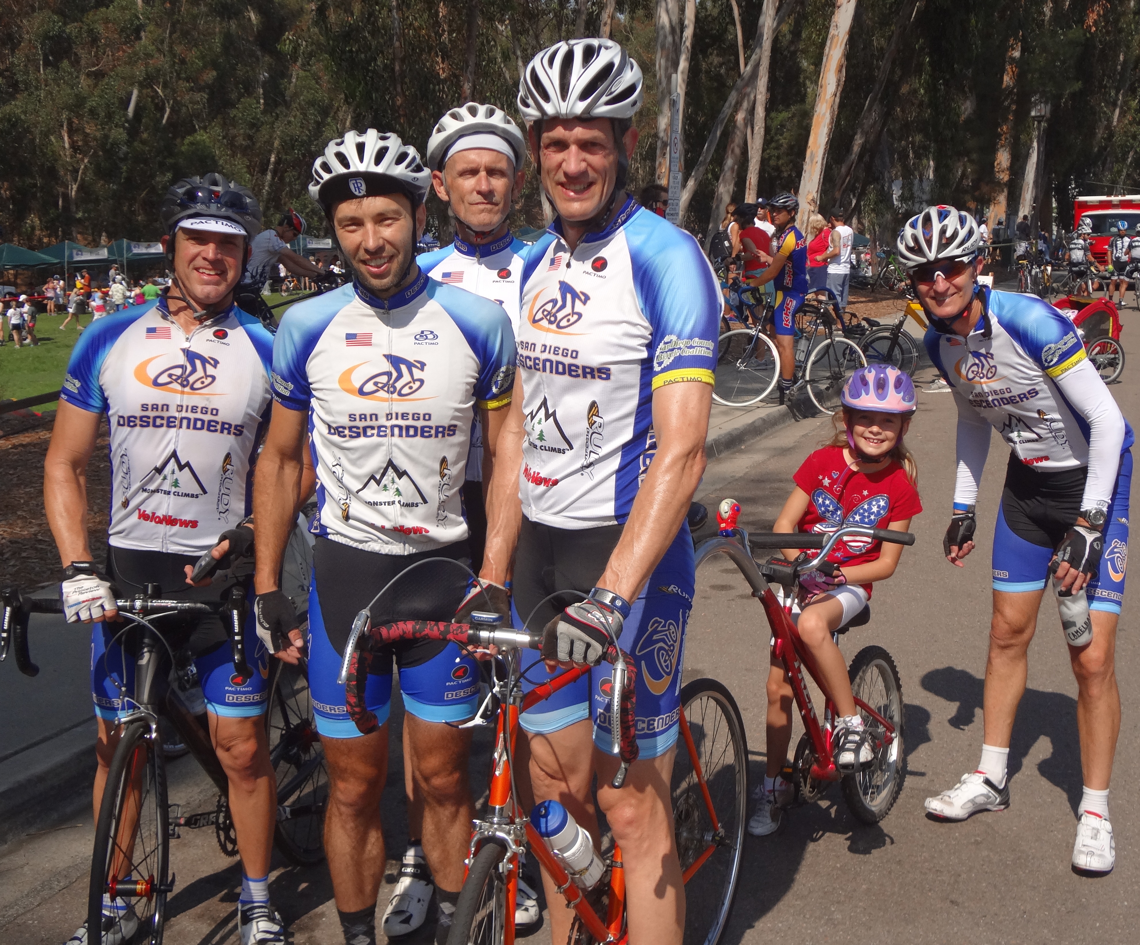 The annual independence day celebration included the Scripps Old Pro ride. It is a 50 mile loop that starts east of Mira Mesa and circles around to Lake Hodges and back. The Descenders had a large contingent of riders out enjoying fine early morning weather and a great ride.