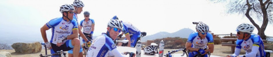 After regrouping at the corner of Cole Grade and Valley Center we made for our final leg back toward the cars. Bob P was suffering up Cole Grade and he rolled into the rest stop just as we were getting ready to ride. At the top of the hill I decided to turn back to find Bob as he was not in sight. I rode the few miles back to the store and did not see Bob anywhere. There was a rider looking for a friend of hers and trying to find her way back to Harrah’s. I asked her if she had any other riders wearing our kit–no joy. I directed her to turn left from the store to ride to Harrah’s.