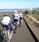 It was a small group that showed for a beautiful morning recovery ride. Sheehan got there on time, even with the time change, with some help from the pajama car drop-off. Guido and Len were also there for the start of the ride I volunteered to host.. I proposed a ride up TP and back across I-5 to climb Sorrento Valley before riding up into Scripps Ranch. That idea fell flat so we rode to the coast and planned to go up PCH to Loma Sante Fe. It was breezy and we had the wind behind us so we hammered west along the bike path setting new PR times for the next few miles. Guido did most of the work and Sheehan pulled more than he should have. Len was always there, tired legs from the big Saturday ride but never far off the back. We got to PCH and cruised north. Sheehan was on point as we flew into Solana Beach and he blew right past the turn so we just kept heading north.