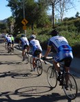 Lake Wohlford gates were closed so we stopped to catch our breath before heading to Woods Valley. Jeff S pulled us the whole way there. He was riding his new bike and riding strong, as usual. Everyone regrouped for Woods Valley. I stayed in the back to watch the carnage unfold. Jeff S pulled us along at 32 mph. Sheehan decided to stick his nose into the wind and hit the front. Tony was the next masochist to take point. We flew along as a group until just before the golf course. The final acceleration by Jeff S dropped Arlyn so I had a gap to close. I got back on the wheel of Hodges and we all flew around the final turns towards the light at Valley Center. Hodges pulled to the front while everyone else eased off to the turn. I set a PR on Woods Valley thanks to the efforts of Jeff S and others–hide and hang.