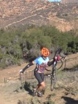 We cruised over the pedestrian bridge and to the start of the Mule Hill Trail. This was a nice warm-up of mostly hard packed dirt, only a few soft spots and rocks. We rode over to where the trail hit HVR and climbed up to Bandy Canyon. The descent was nice and smooth until we took the turn at Isabel Creek. This dirt road is a washed out, bumpy mess that cut us over to Hwy 78 where Mike led us toward the end of Bandy Canyon Road. We immediately turned off Bandy and rode the San Dieguito Trail, which basically parallels Bandy Canyon until you turn towards the climb up Raptor Ridge.