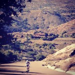 We rode towards the Lake Hodges pedestrian bridge before getting a flat–found a very small sliver of steel in the tire. We managed to blow up one spare tube before fixing Dave’s rear tire. We were now out of spare tubes and CO2 canisters and the ride just started. It was a beauty am so we rode off towards Mary Lane. We climbed toward Summit and descended down to the road that parallels 78 by the Wild Animal Park. We took turns at the front, keeping a good pace for a hooky ride.