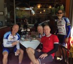 We decided on an easier classic Skive Ride route without Jesmond Dene Road. We rode up HVR, down Bandy, across 78 and hit Milky Way. We rode up Summit and down toward Citrus with a loop back into Escondido to our planned destination: A Delight of France. The guys all rode strong, especially given the injuries and other body damage. Tony pulled more than I expected; he is strong despite a lower hematocrit and increased white cell count. Tony is almost done with his chemo regimen-congrats to him.