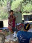 Friends and family of Tony O’Gorman came together at Kit Carson Park this morning to celebrate the life of Tony. Diane and their two grown adult children, Patrick and Bridgette, were there with lots of friends and family. Bill B helped organize the set up of computers and screens to show many photos of Tony and his family over the years. There was a second screen set up for all the Descender photos taken of and with Tony over the many years he rode with the club. Diane brought coolers full of drinks and sandwiches/chips for the attendees. The large crowd was there to remember Tony and the oversized impact he had on all our lives. Tony was there as well in his cremation urn.
