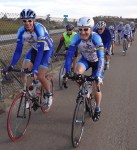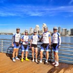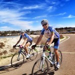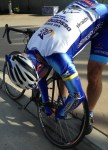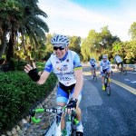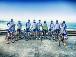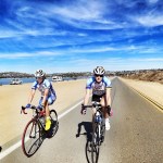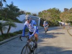 Geoff and Steve were pushing the pace up Torrey Pines – Larry and I worked hard to bridge up but then Larry declares he needed to use the bathroom at the top and just rode away from us – quickly disappeared in the distance, as if the three of us were standing still. He took top honors on every single climb after that as well, by the way, strong climbing. We grabbed some free bananas handed out at the top of TP and kept going. Rob broke a spoke as we approached UCSD campus, which made Proulx (who was riding behind Rob) immediately hit the brakes before any of us had a chance to figure out what was going on, giving Rob about 30 feet of extra space, in case something goes really wrong. Good instincts, Proulx! Luckily it was just a minor problem. Rob fixed his wheel in about 10 seconds (impressive!) and we carried on – we decided to incorporate Black’s Beach as an additional climb – I think this was a new road for most, except for (I think) Geoff, Len and I.